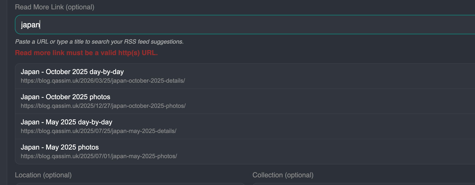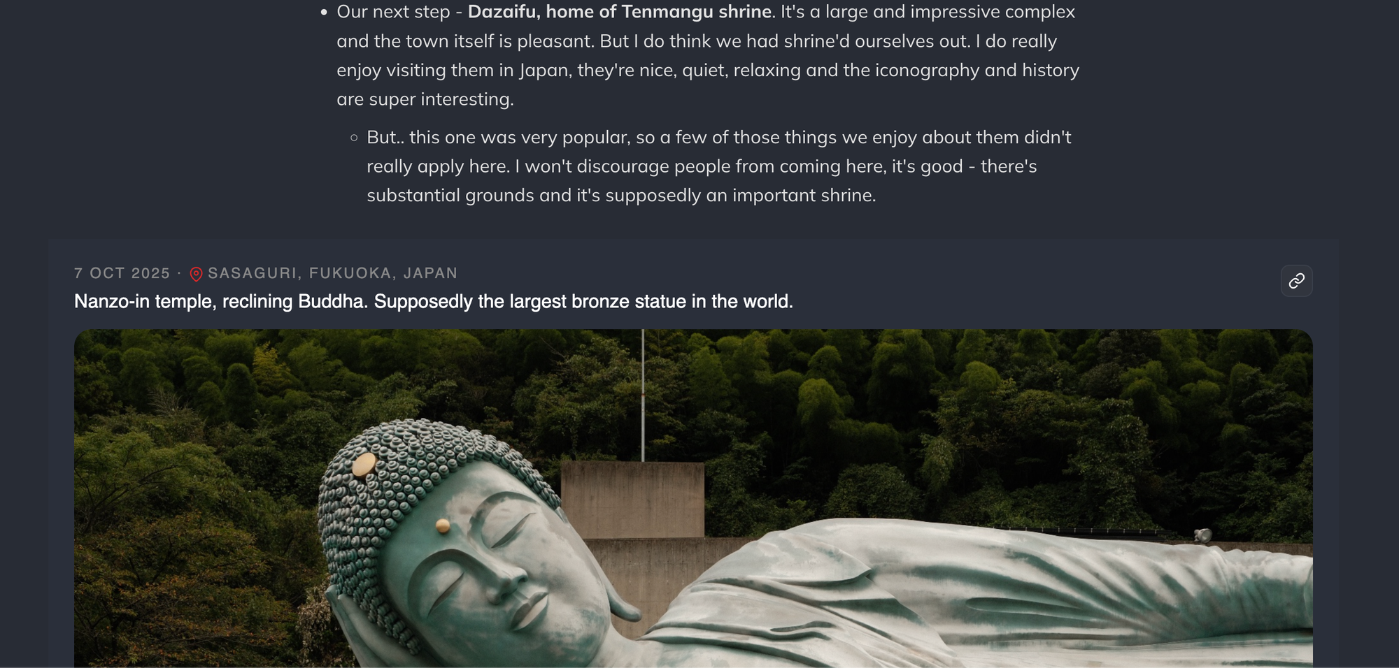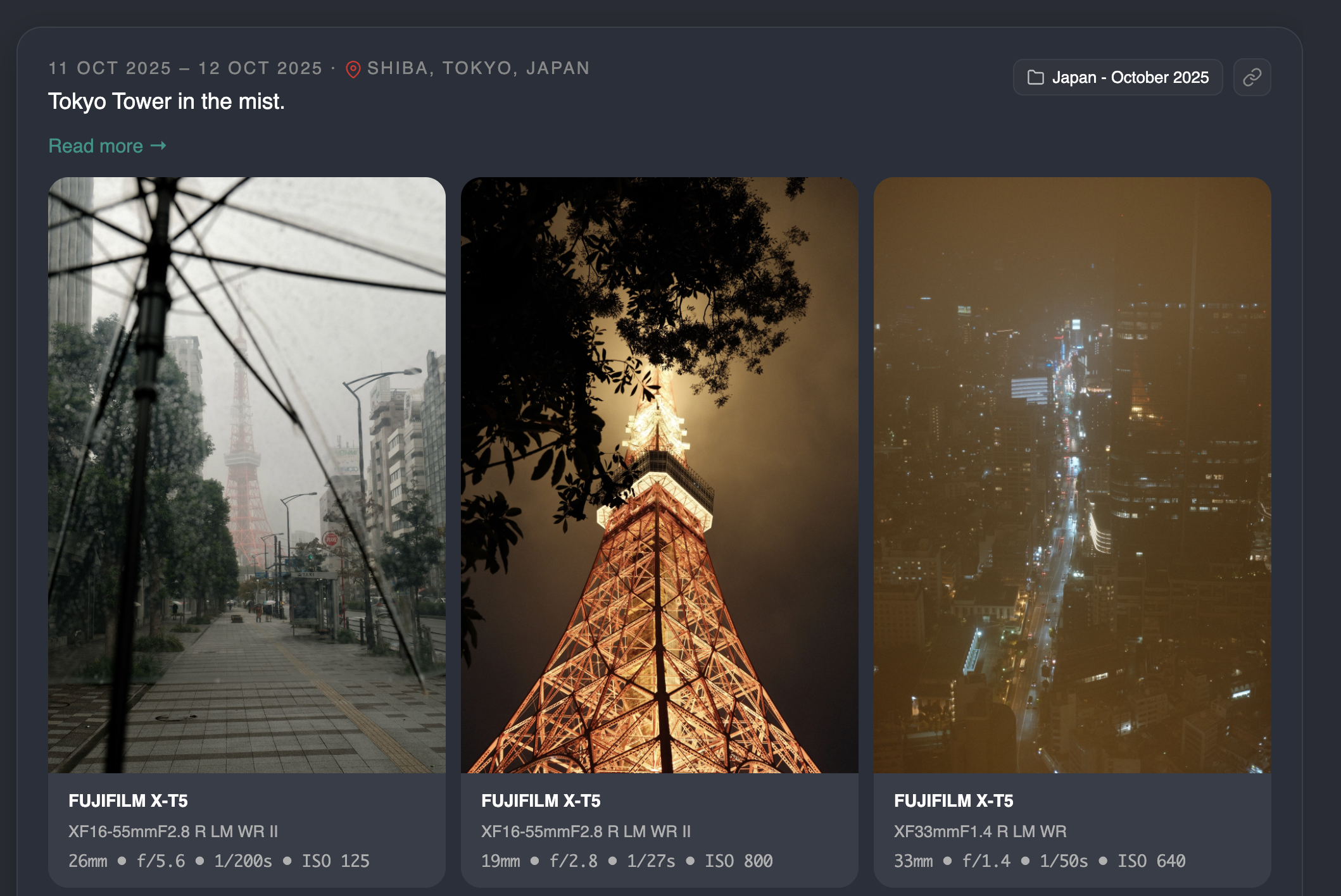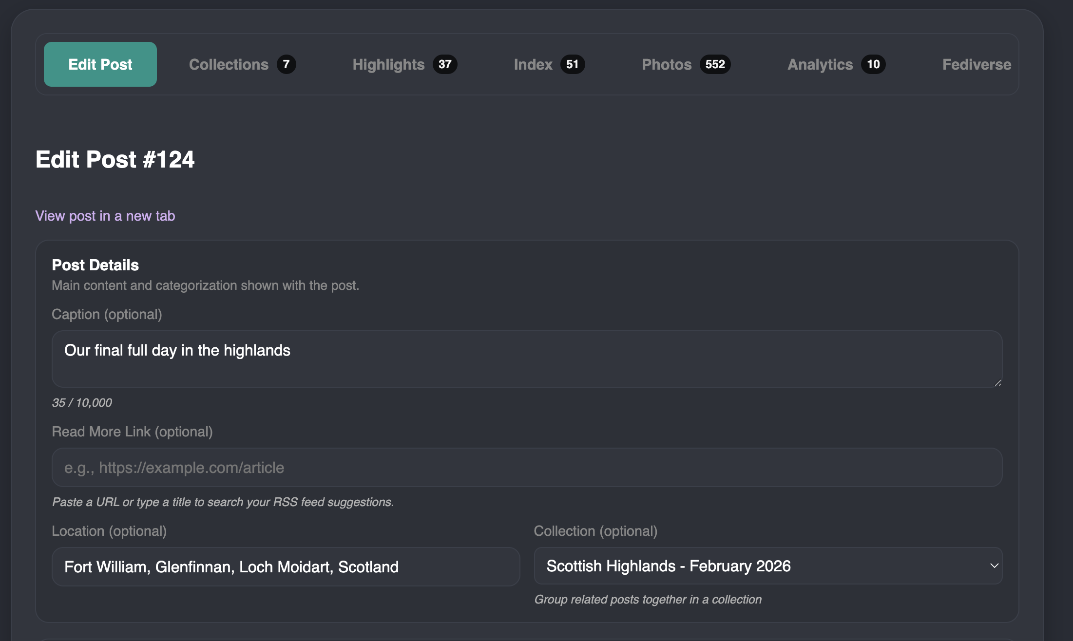 - A link to the collection the post is a part of (if it is a part of a collection). In the image above, that post belongs to the 'Japan - October 2025' collection.