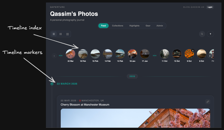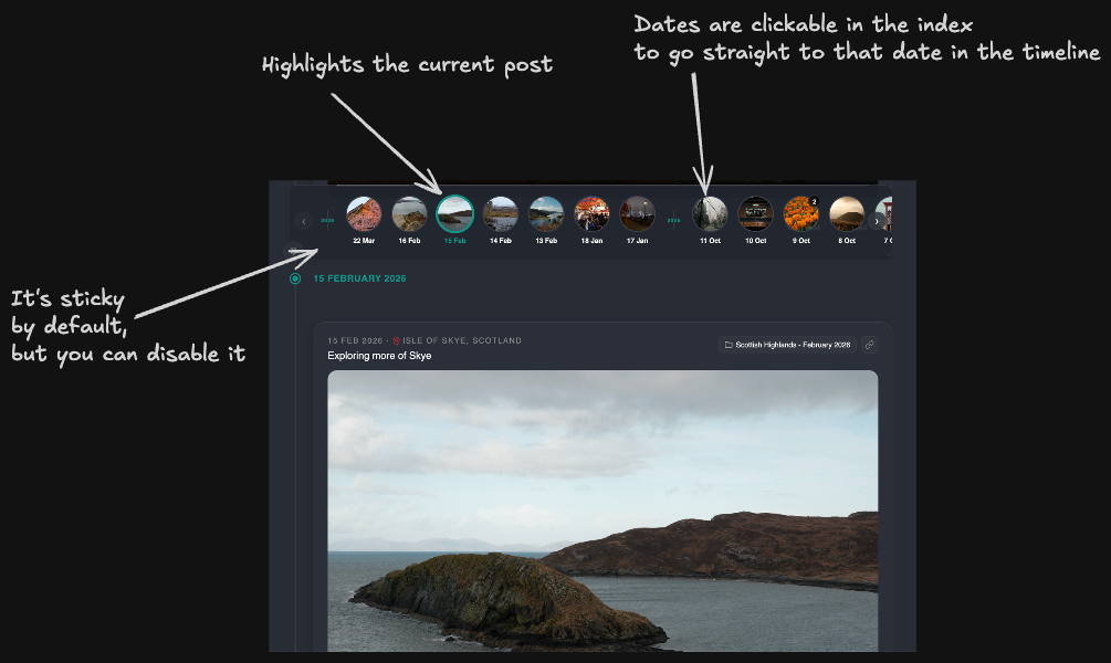 - Timeline index will show if there are multiple posts under that date.