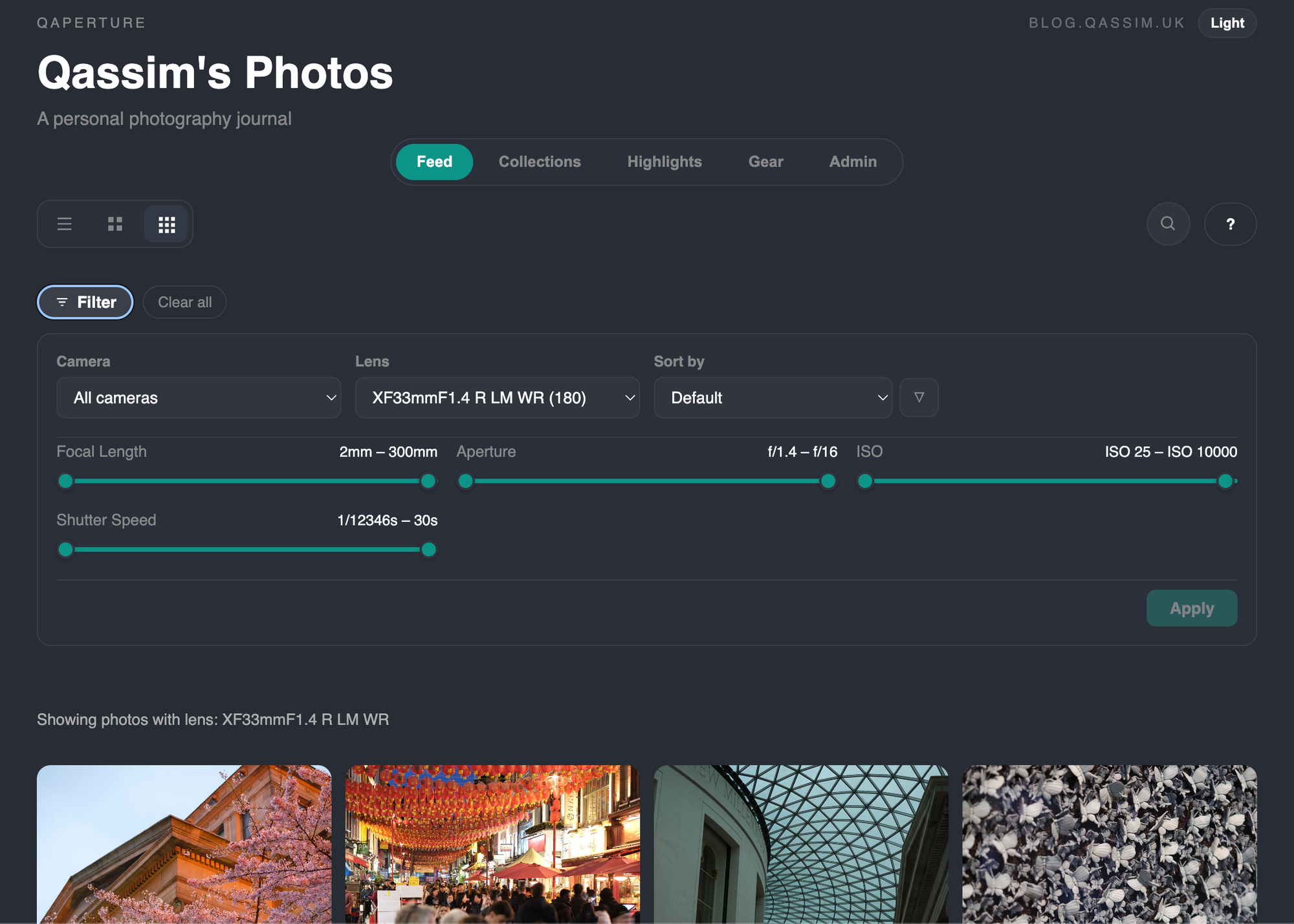 This leans into all the exif data I parse and store in the DB against each photo to provide stats and filtering based on it: