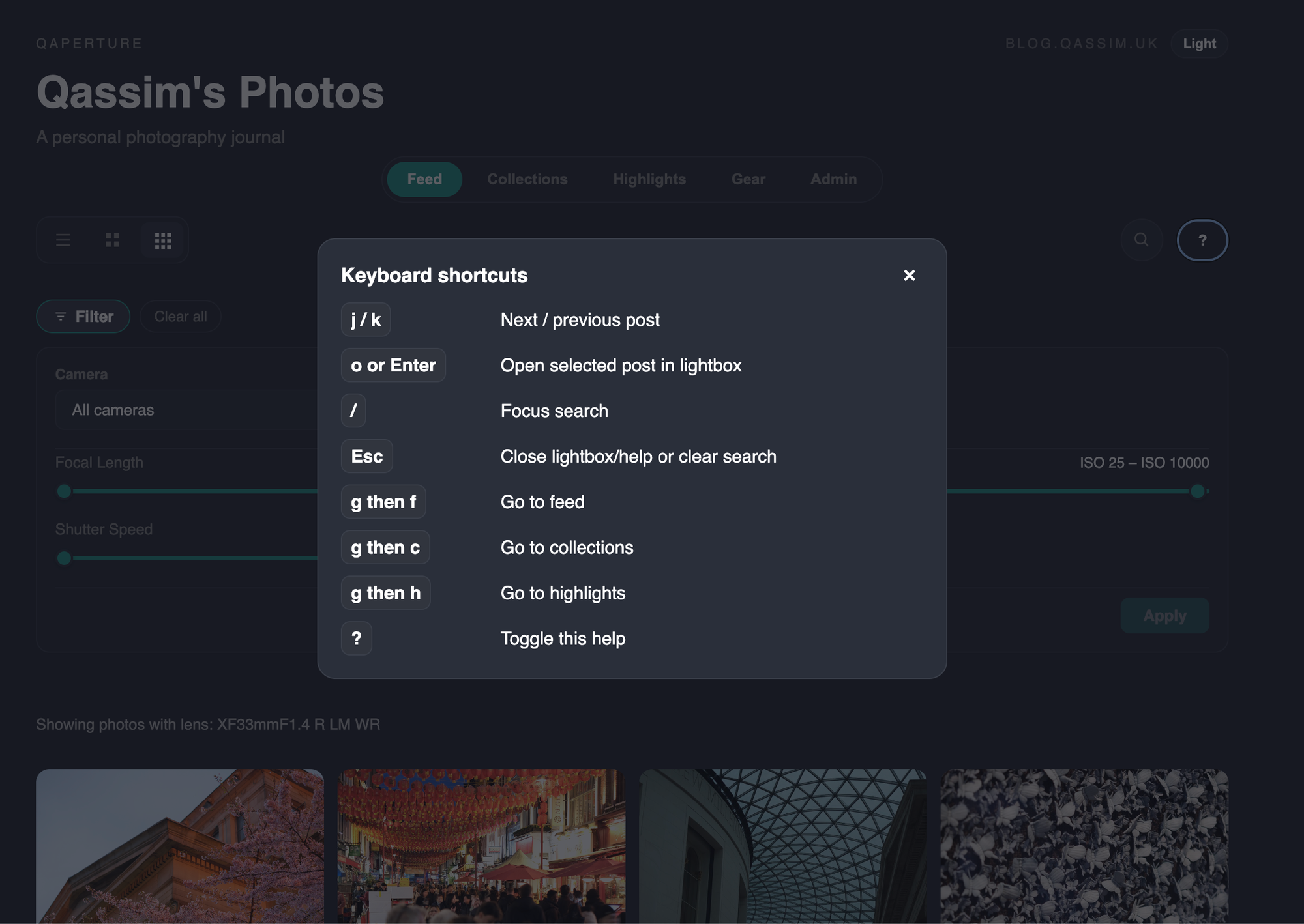 So I started developing something entirely custom, and because I'm the least creative person in the world - I initialised it with 'q' and called it qAperture. I have spent quite a lot of time refining this and giving it a load of features that I specifically want, so this post will document those.