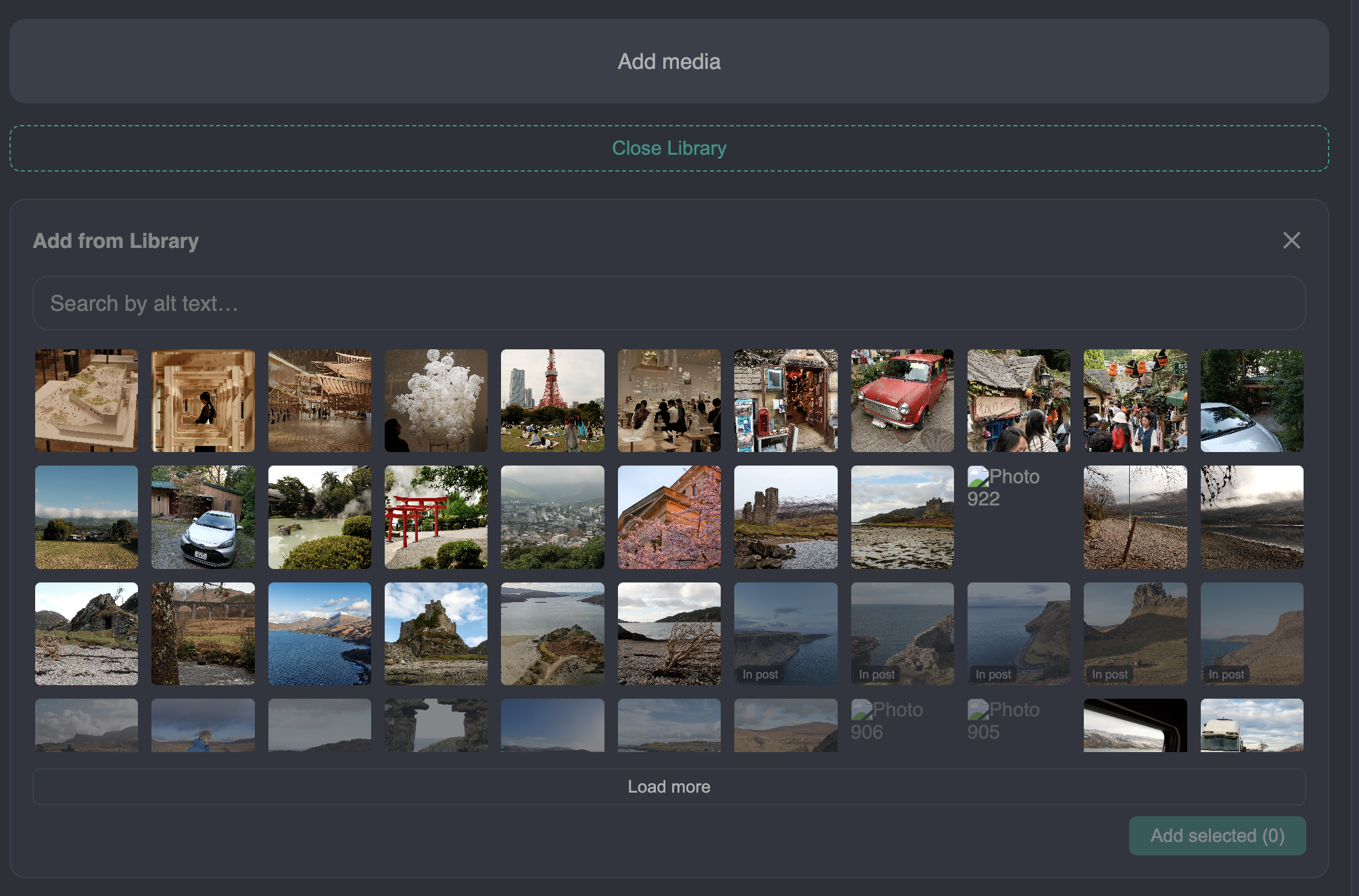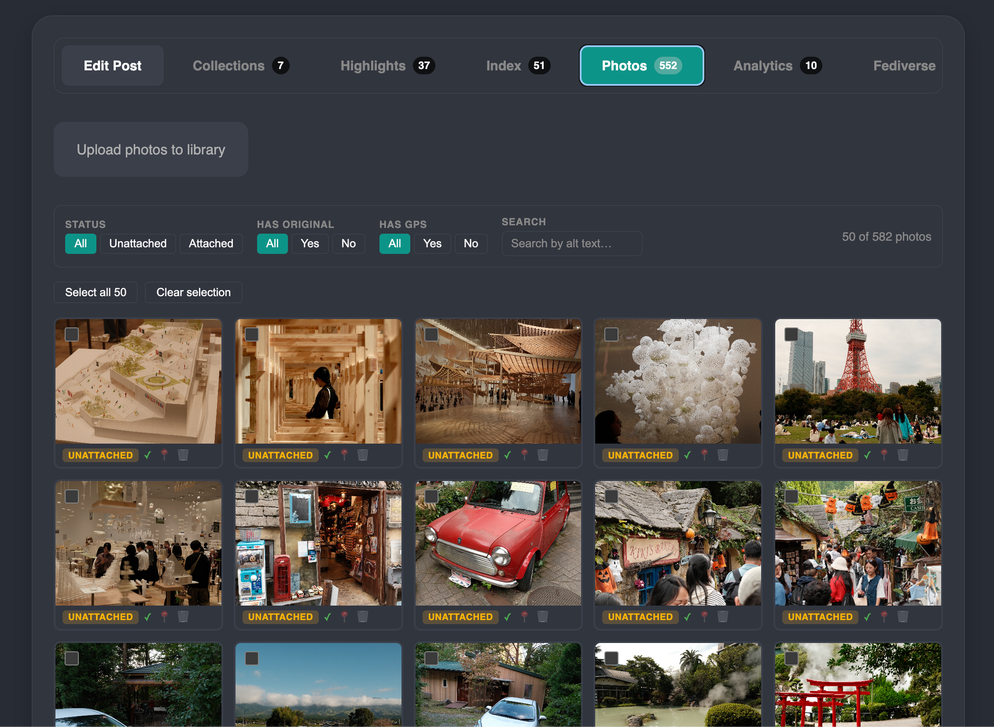- Uploading photos to here to either later attach to posts or embed them independently on other websites (I'll come back to embeds)