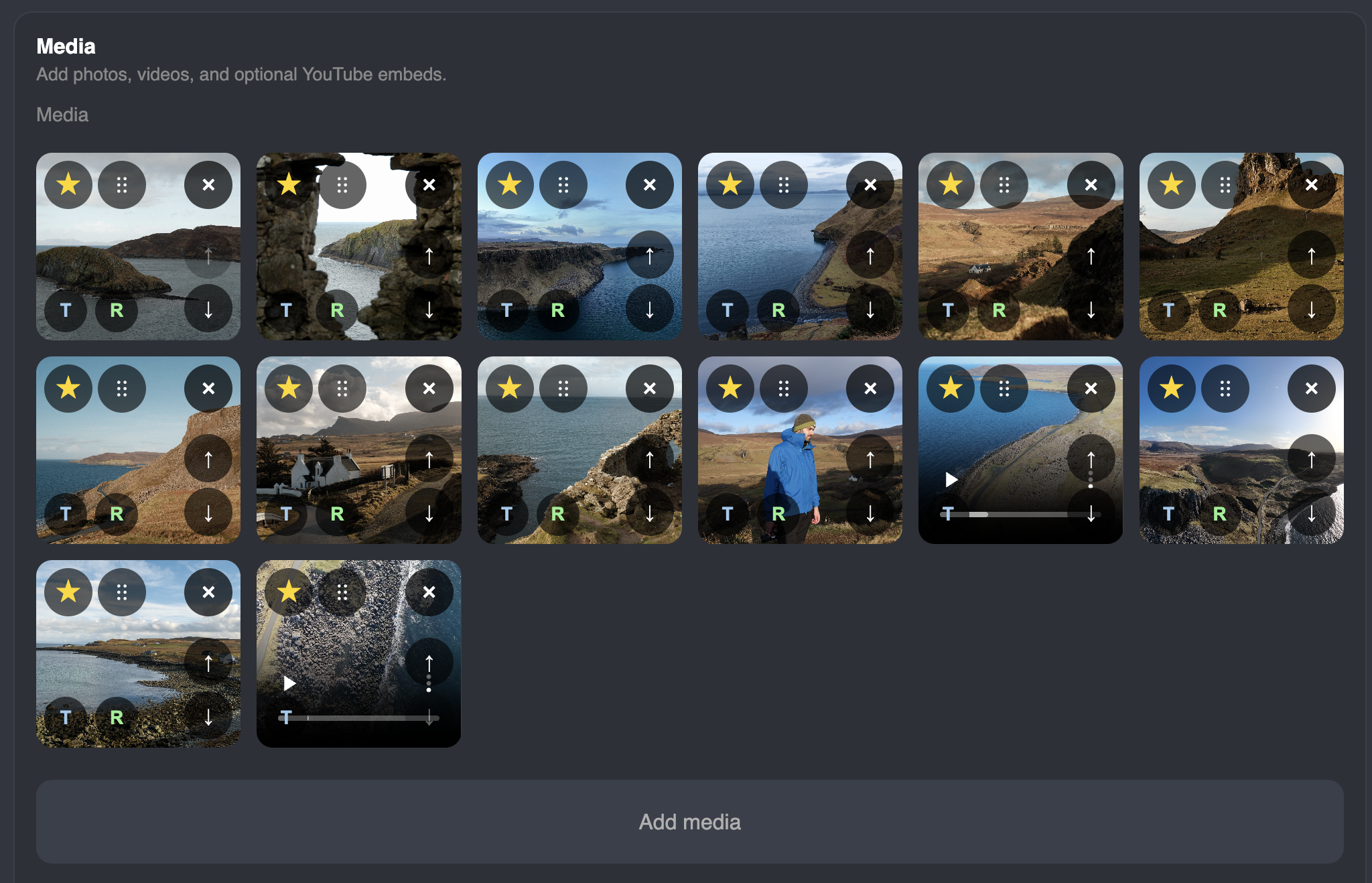 - Video support, both uploading videos and youtube embeds.