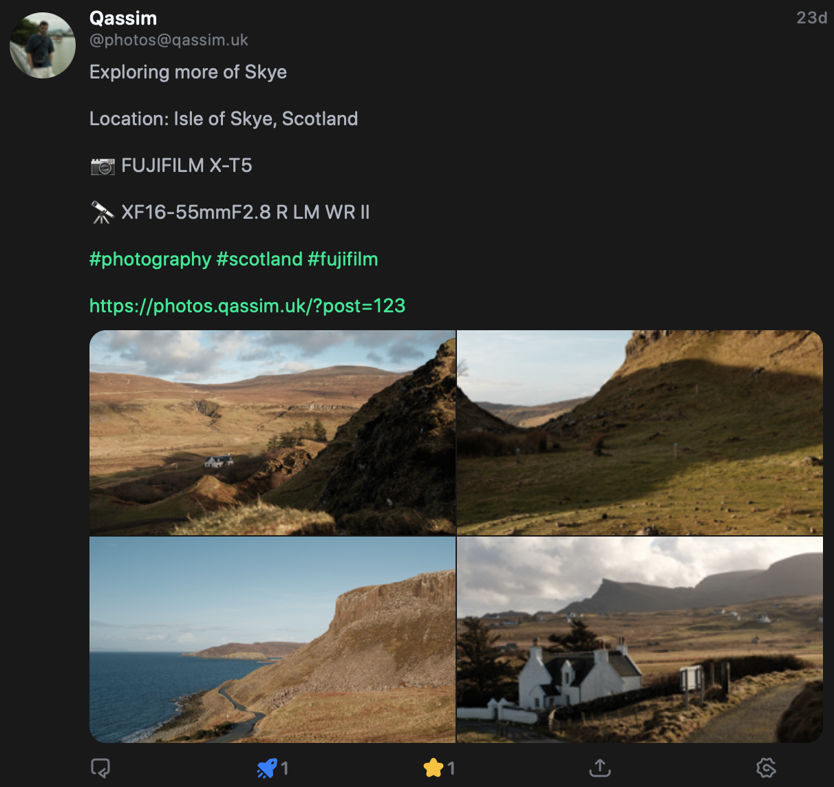 Here's how the federated post of my photos looks on my same feed: