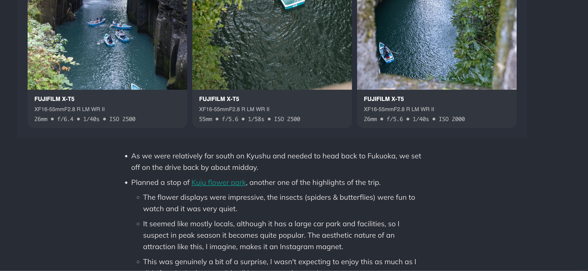 Instead of a loose bunch of photos in my photo library, or an album for a particular trip, I'd regularly find myself going back to my own story highlights on Instagram to remember a trip. As I found myself doing that more and more, I realised more of what I was missing and began to put a bit more effort into it so that when I'd inevitably go back and review my profile, I could 'relive' the trip in chronological order and also have a bunch of curated posts from different parts of the trip.