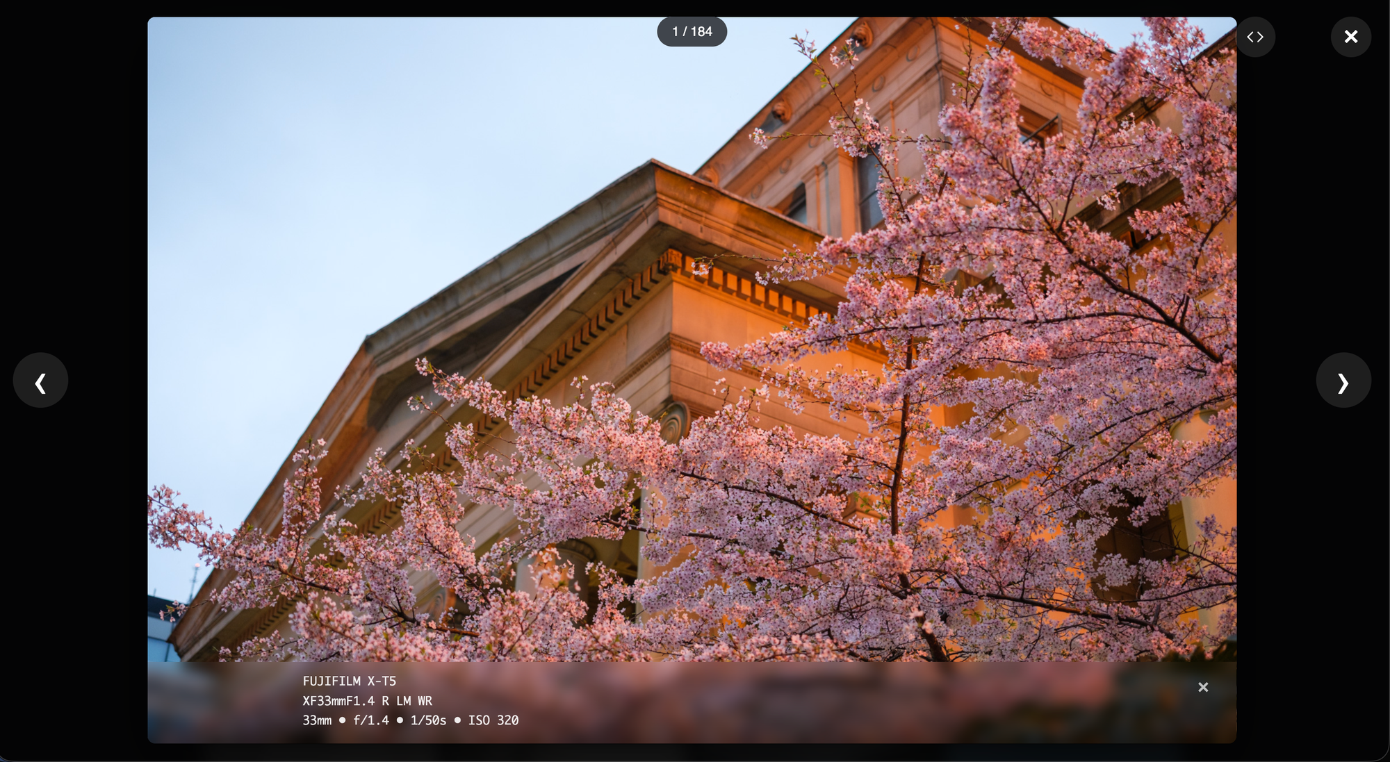 Which brings me on to my next feature, within this view, you can see the exif data for the photo overlaid by clicking the 'i' button.